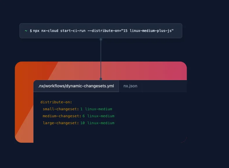 Nx understands that some CI pipelines need more resources than others. To account for this, Nx Agents gives you the ability to define three different classes of agent allocation configurations. You can use fewer agents for smaller PRs and more agents for larger PRs. This allows you to save money where possible and use the full power of Nx Agents when needed.